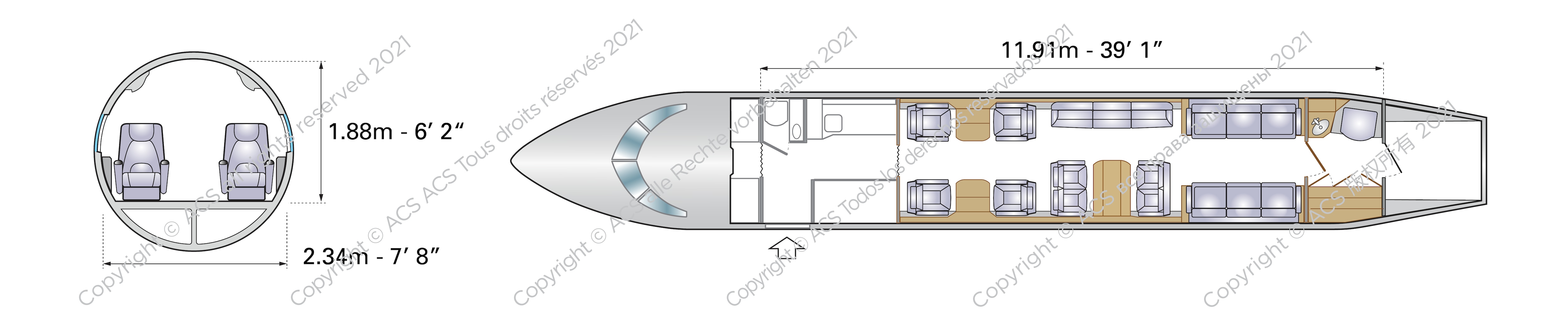 Below are two typical configurations found on a Dassault Falcon 7X.